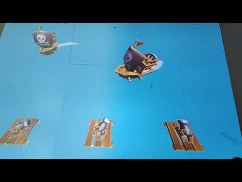 Морський бій на інтерактивній підлозі Briolight S: помах ногою заставляє гармату вистрілити. Якщо ядро влучає в корабель — він тоне.